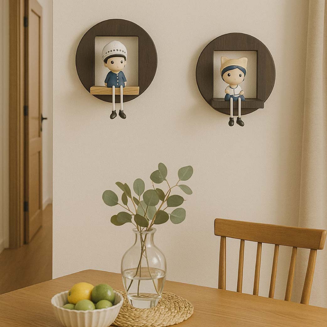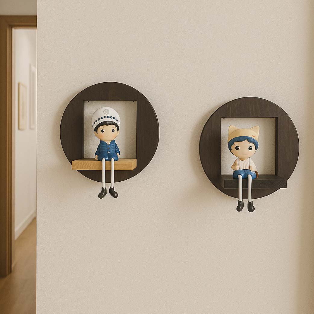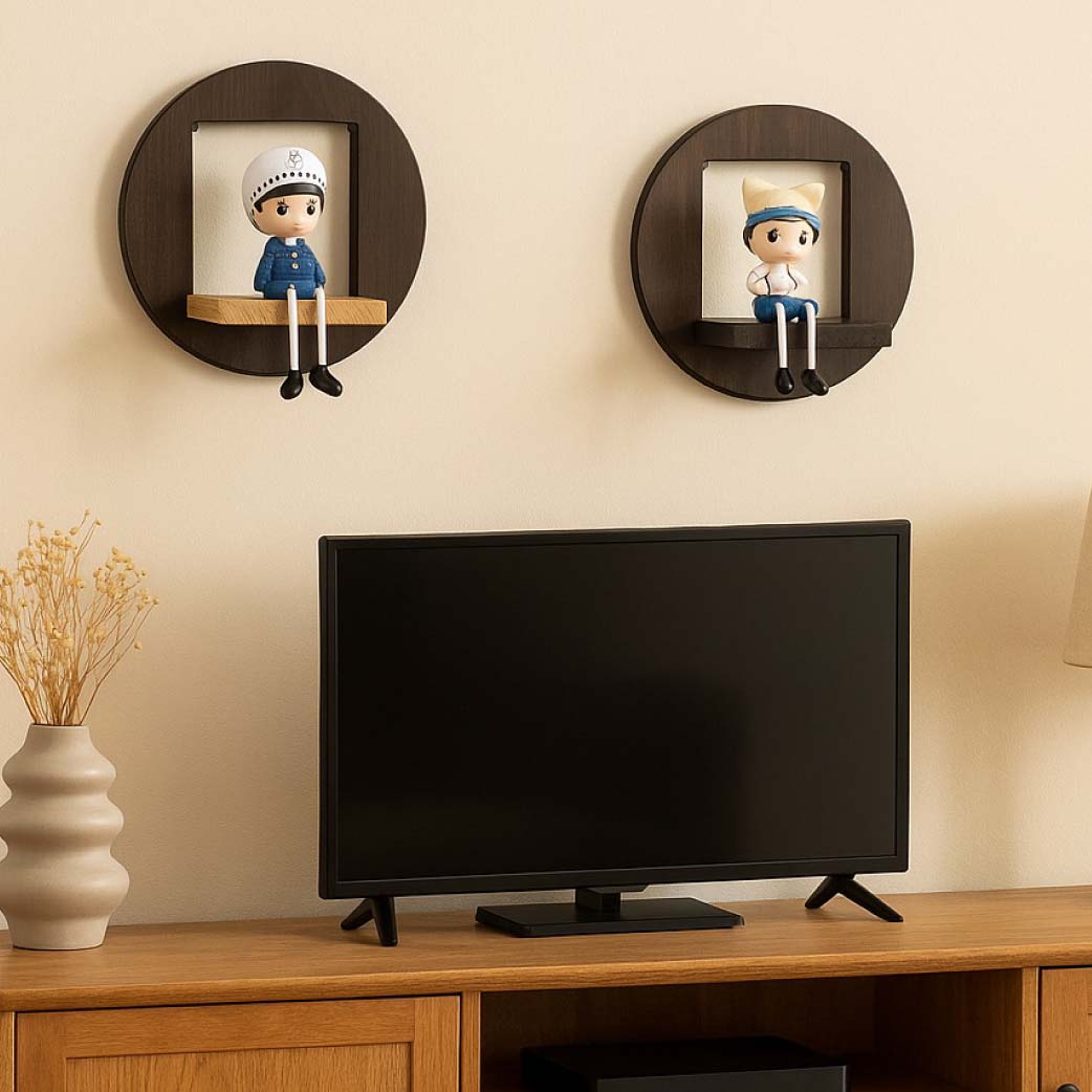 Set Includes: 2 round wall-mounted shelves, each 26cm in diameter