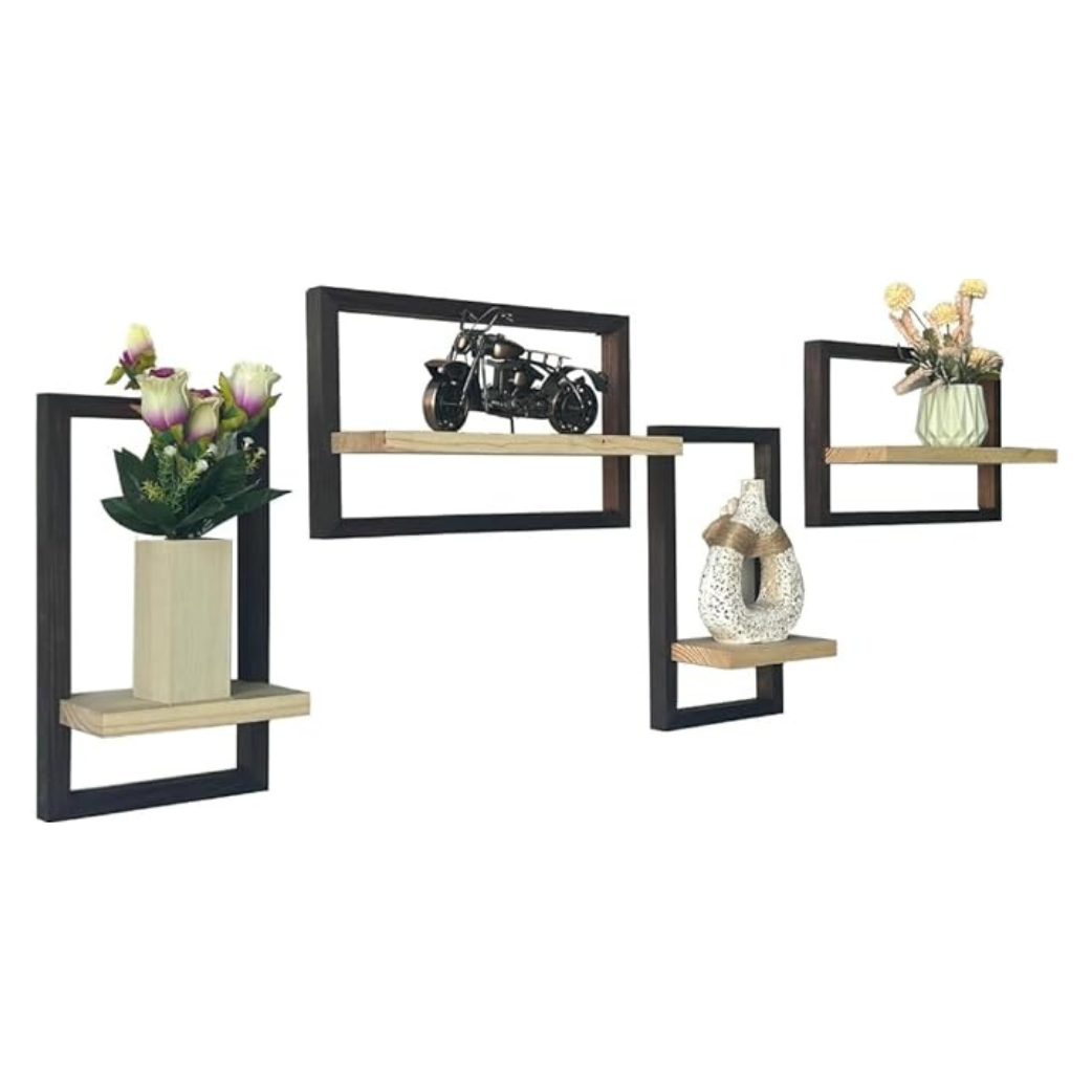 Artiflair Square Wall-Mounted Shelves – Set of 4 Framed Floating Display Units, Modern Decorative Storage for Plants, Art, and Accents – Ideal for Living Room, Bedroom, Bathroom